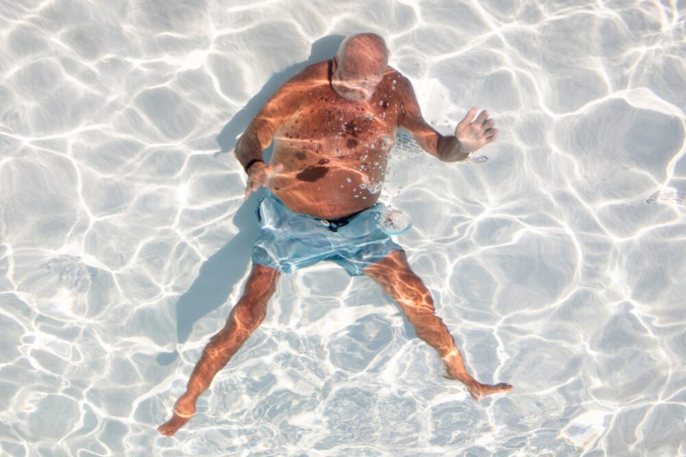 From above, the surface twists everything into fractured shapes. Without the camera, it’s difficult to notice just how bizarre bodies look beneath the water — faces lengthened, limbs bending in ways that seem impossible. I once studied perceptual continuity, which can be summed up like this: the world is strange, but your brain tidies it up. Otherwise, you’d be overwhelmed by useless detail.