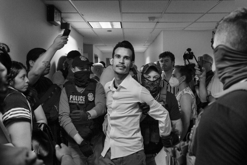 This series documents daily arrests at immigration courts in downtown Manhattan. Federal agents enforce ICE operations. Since May, asylum seekers have been detained after leaving court on their hearing days, regardless of judges’ decisions. Since June, I have spent nearly every weekday inside the courts at 26 Federal Plaza and 290 Broadway. Each day, ICE agents detain non-U.S. citizens attending hearings—many with Temporary Protected Status or pending asylum claims. They complied with the system, yet were seized in hallways, arrested, transferred to distant detention centers, and placed on paths to deportation.