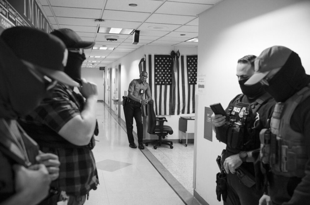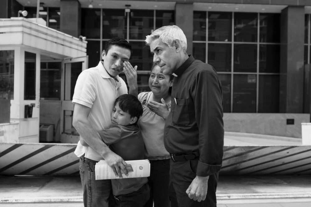 Inside the courthouses, masked agents in bulletproof vests move with practiced indifference. Weapons glint under fluorescent lights as they surround targets, usher them toward elevators or hidden exits, and disappear into windowless corridors. Children cry. Parents are taken. Spouses emerge alone. By mid-August, attendance fell as people requested online hearings, yet policy changes forced in-person appearances, leaving respondents exposed to agents waiting outside.