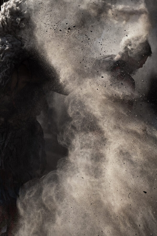 For several years, Pierre Liebaert has immersed himself in carnivalesque festivities across Europe. Marked by inversion, excess, and drunkenness, these cathartic rites—where impulses are unleashed—reenact ancestral tensions and signal the passage toward a new cycle or another stage of life. He takes part by deliberately placing himself beyond beauty, comfort, and reassurance, pushing his gaze toward peripheral zones where, out of darkness, what lies at the core of the human emerges.